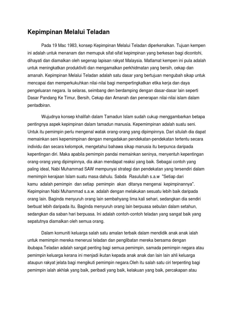 Sekumpulan individu yang mempunyai kepimpinan yang lemah akan cepat merosot menjadi. Interested in flipbooks about Kepimpinan Melalui. View flipping ebook version of Kepimpinan Melalui Teladan published by AZIMAH BT MOHD ZAWAWI Moe on 2021-05-19.